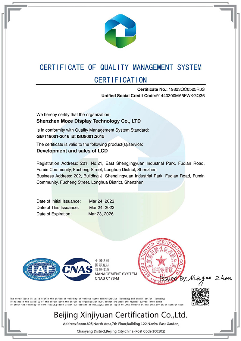 产品尺寸多、型号全,覆盖0.96寸-15.6寸。公司先后获得ISO9001质量管理体系,ISO14001环境管理体系,通过了国内外众多品牌客户严格的品质审核认证,并打造了良好的质量口碑。